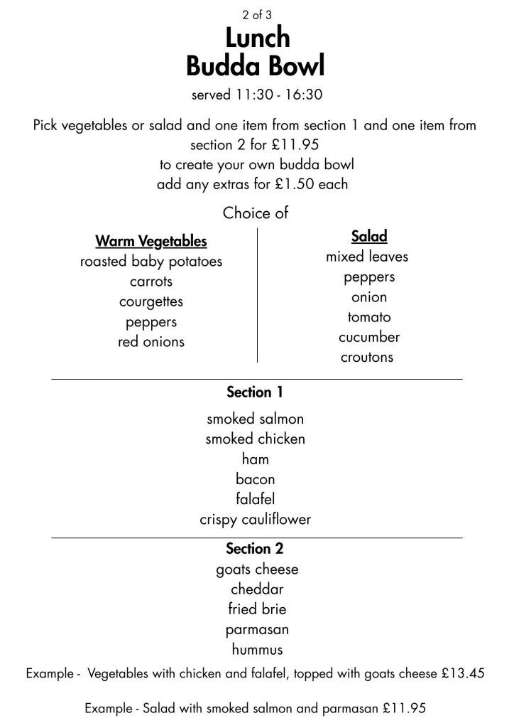 Our new menus feature a wide range of dishes including delicious breakfasts, small plates, sharing plates, traditional lunches, sandwiches, Buddha Bowls, sandwiches, and desserts. We also have a children’s menu and doggy menu so everyone can enjoy a meal.